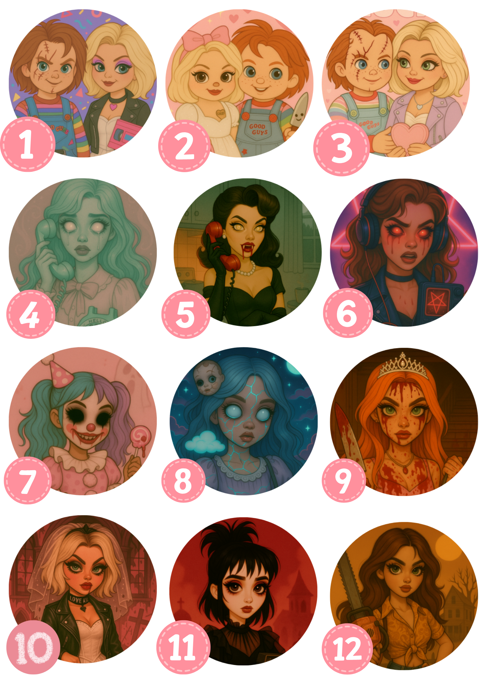 Chaque illustration est une création Nevaé France, imaginée et réalisée avec soin. Plongez dans l’univers glaçant du cinéma d’horreur et de la pop culture à travers une sélection d’accessoires faits main : badges, décapsuleurs ou miroirs de poche.