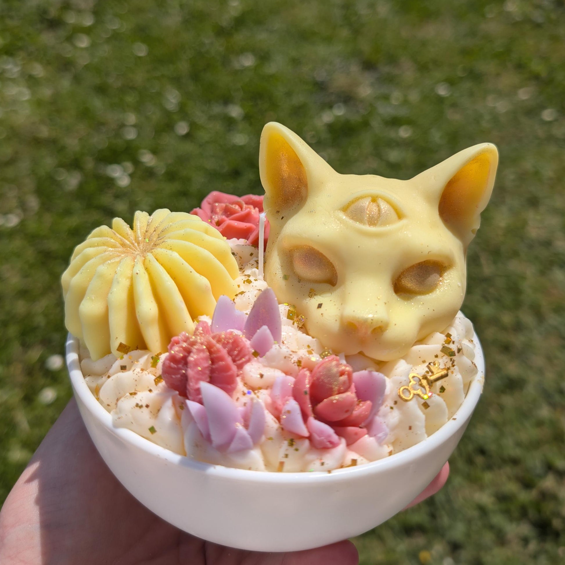 Bougie tête de chat et Oeil de tigre (sur mesure)